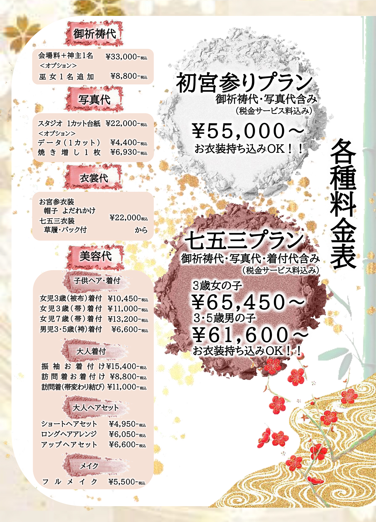 初宮参りプラン ¥55,000〜(サービス料・税込)